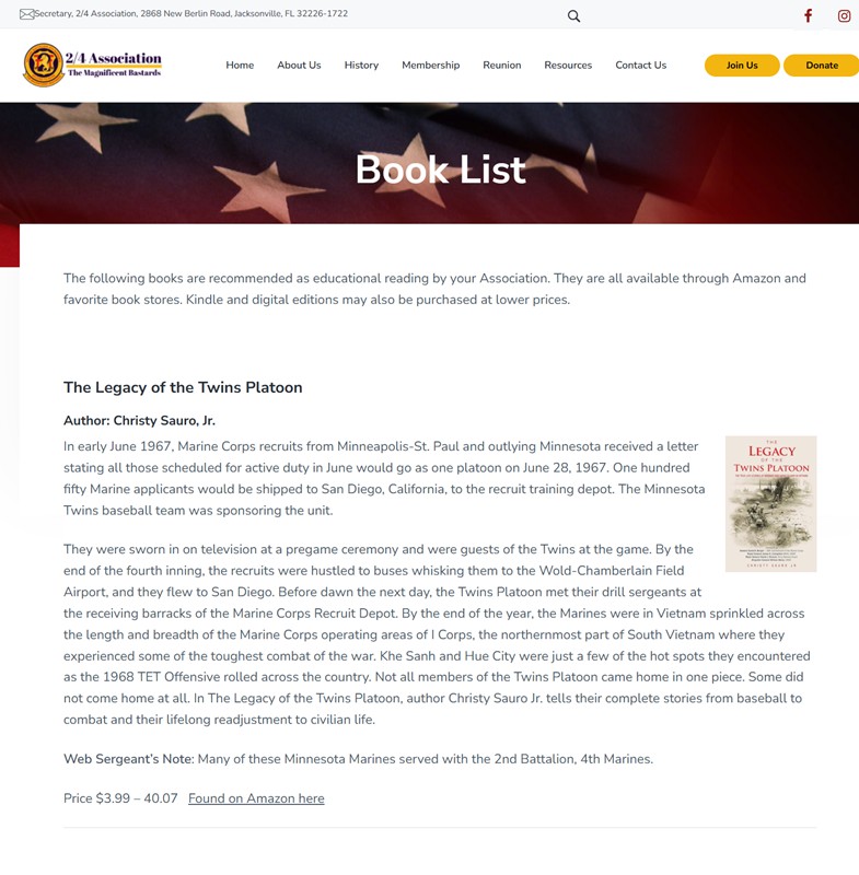 The 2nd Battalion, 4th Marines, has added the book to their “Book List” as educational reading. What a great honor.